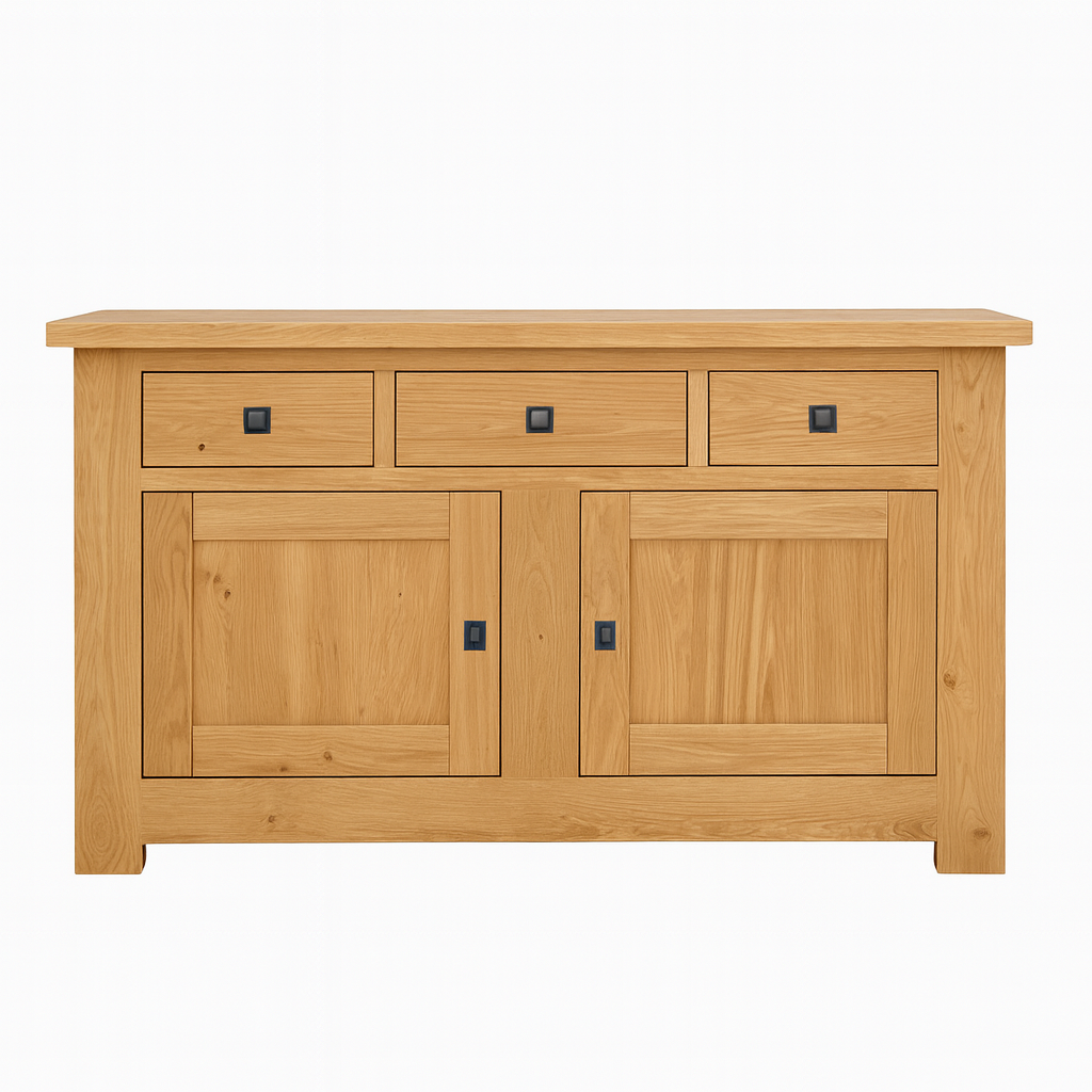 • Bahut bas en chêne massif, 2 portes et 3 tiroirs