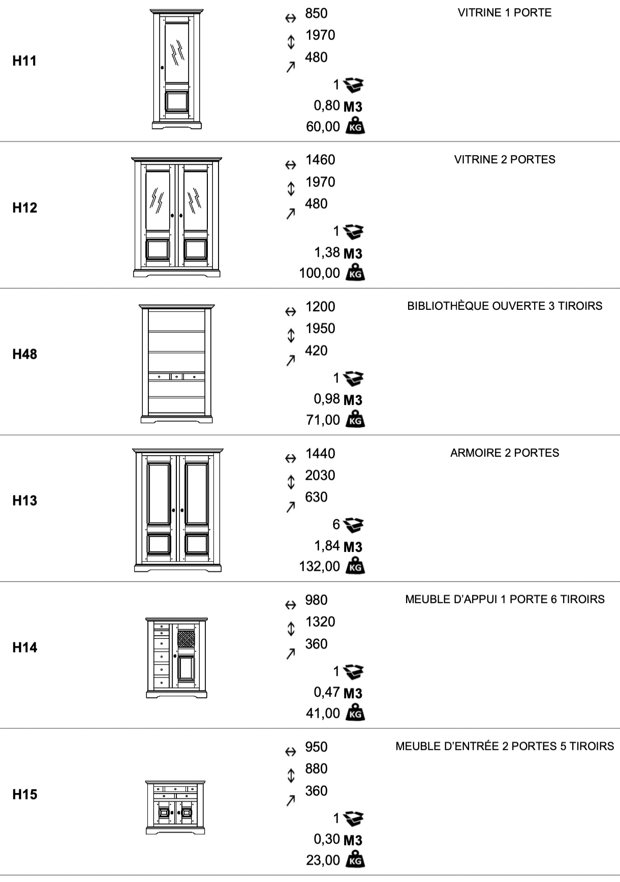 Si vous aimez le style, mais que les dimensions ne conviennent pas, notre partenaire Meubles Gibaud peut fabriquer sur-mesure les meubles que vous souhaitez.