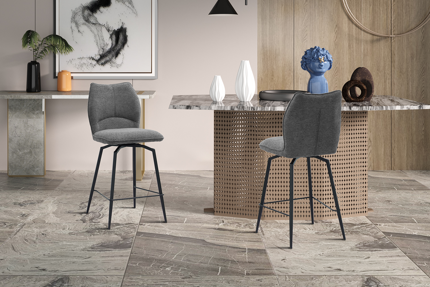 La chaise haute pivotante LARA allie confort et modernité pour sublimer votre cuisine ou votre coin bar. Son dossier enveloppant et son assise généreusement rembourrée offrent un maintien agréable au quotidien.