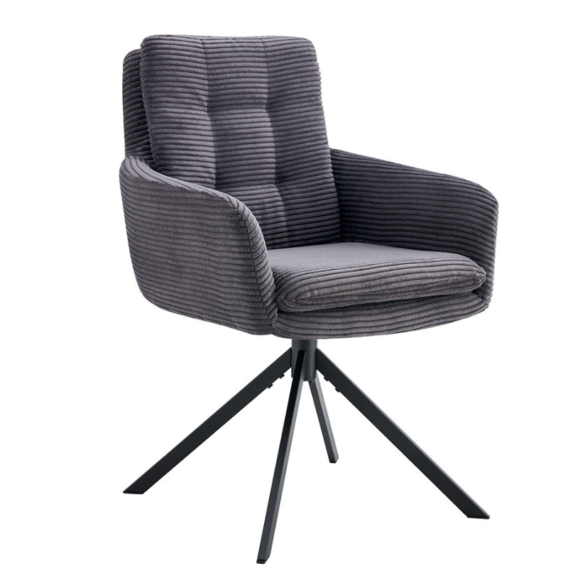 Le revêtement en velours côtelé apporte une touche chaleureuse et tendance, tout en offrant une assise douce et agréable. Ses accoudoirs intégrés et son dossier rembourré garantissent un excellent maintien, idéal pour un usage prolongé autour d’une table de salle à manger ou dans un bureau.
