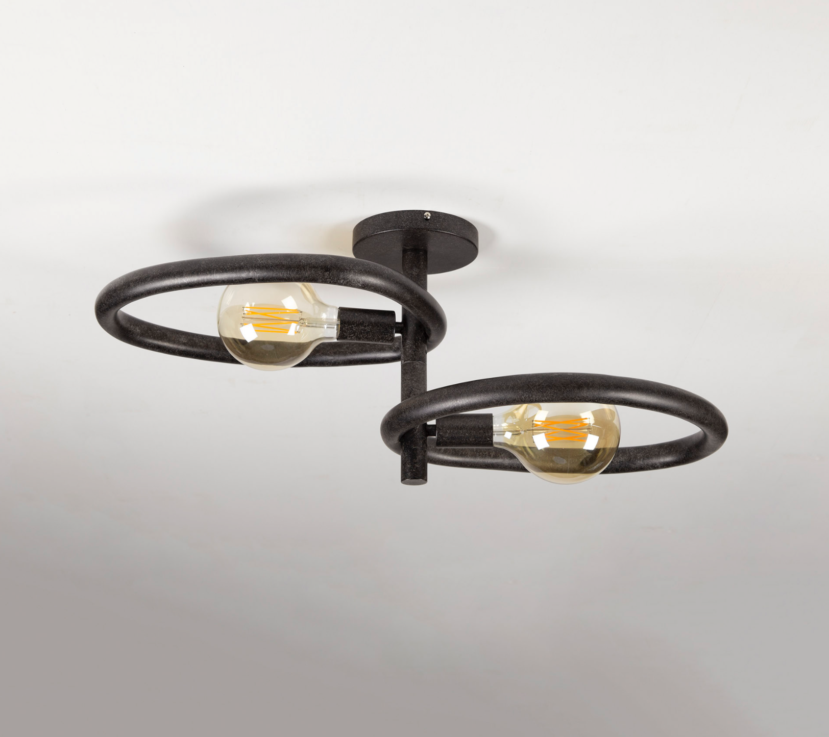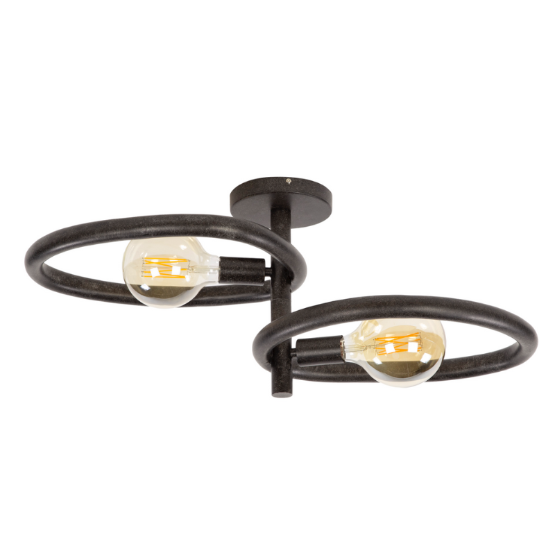 Le plafonnier PEBBLE est un luminaire audacieux qui combine design industriel et élégance contemporaine. Composé de deux cercles en métal noir texturé, il met en valeur deux ampoules apparentes qui diffusent une lumière chaude et accueillante. Son style épuré et graphique en fait un choix parfait pour un intérieur moderne, loft ou cocooning.