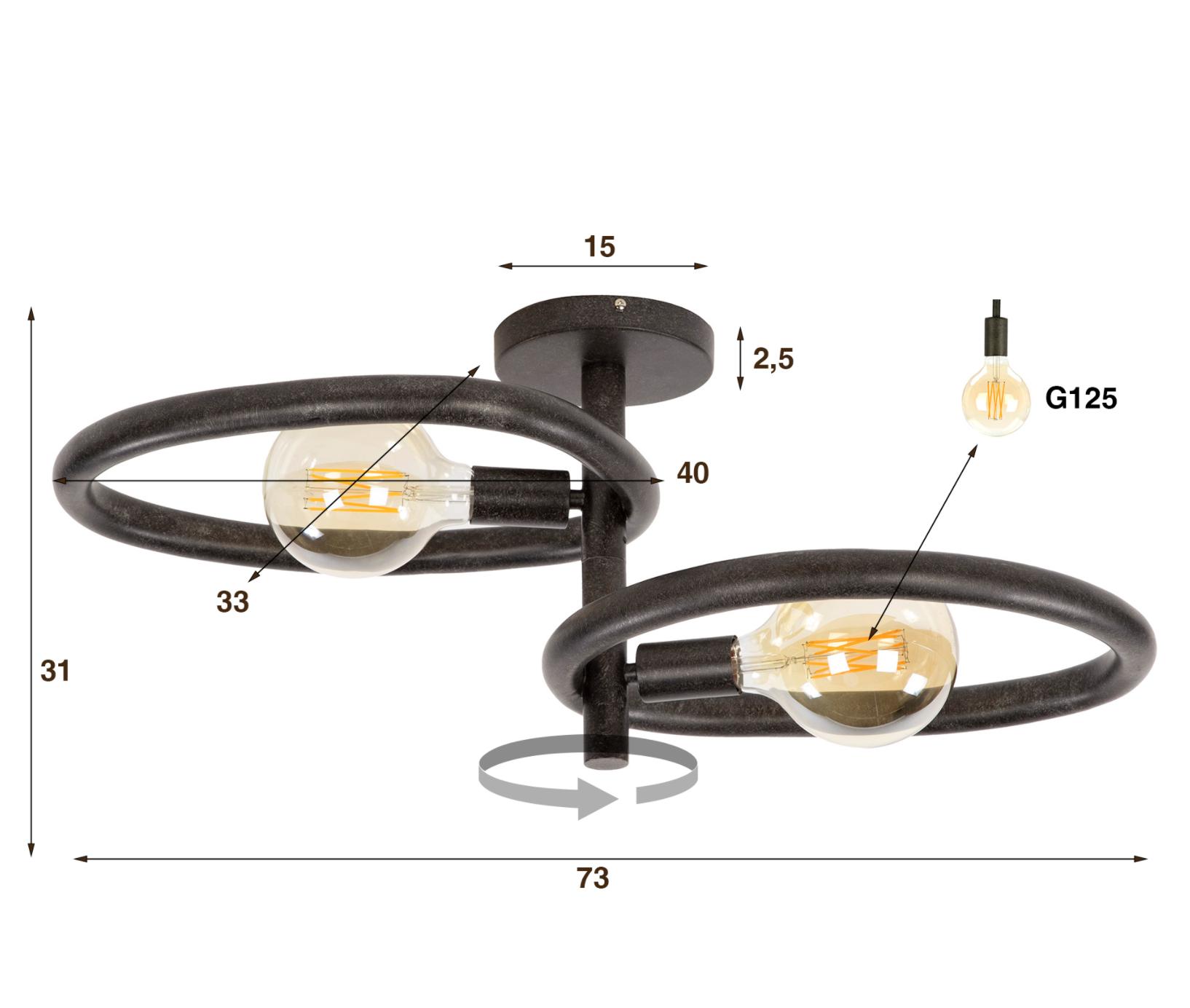 - Type d’ampoule : G125, ampoule à filament recommandée