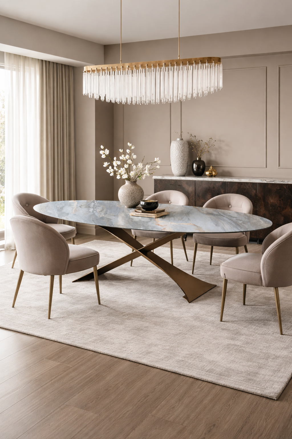 La table VIK s’impose comme une table en céramique design et personnalisable, idéale pour une salle à manger contemporaine alliant esthétisme, robustesse et modularité.